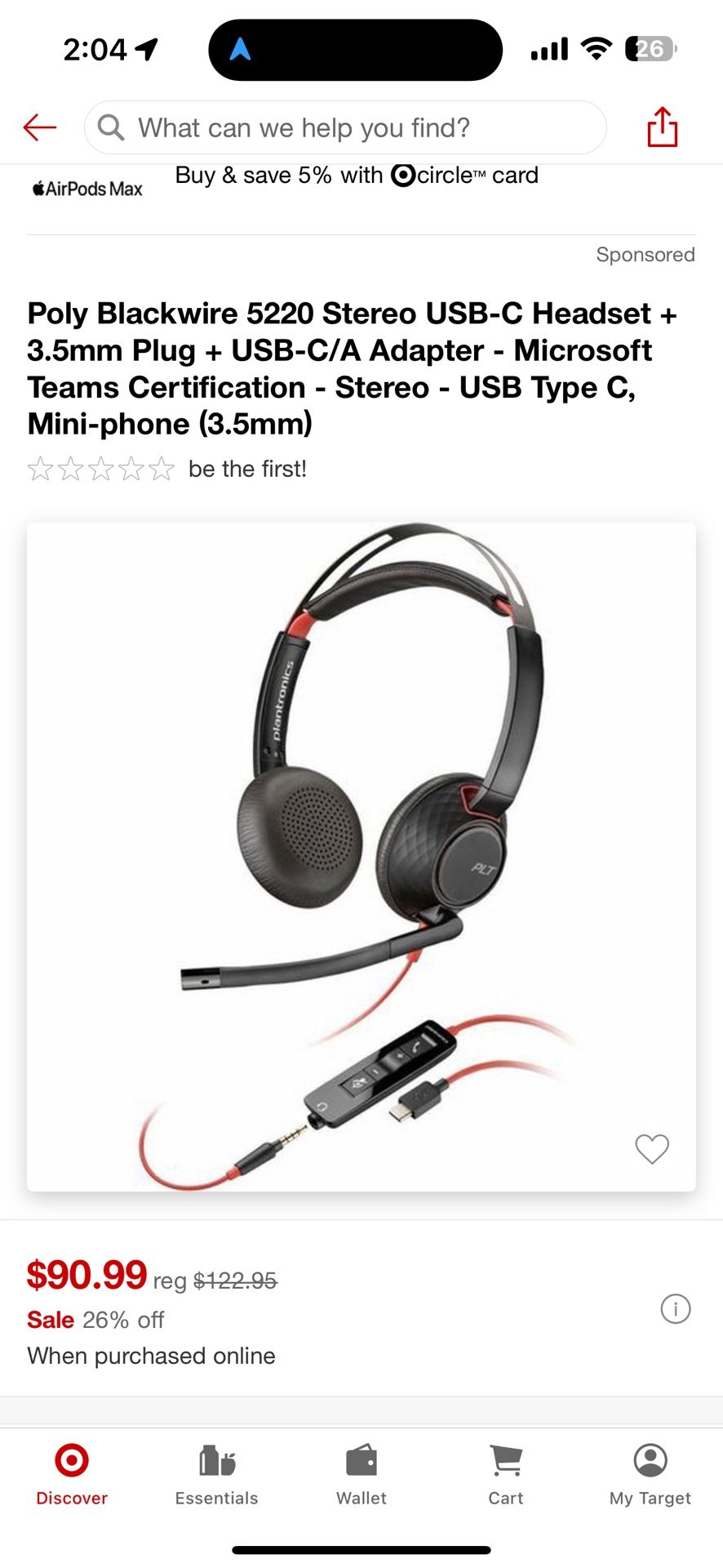 Poly Blackwire 5220 Stereo USB-C Headset + 3.5mm Plug + USB-C/A Adapter - Microsoft Teams Certification - Stereo - USB Type C, Mini-phone (3.5mm) NEW!!