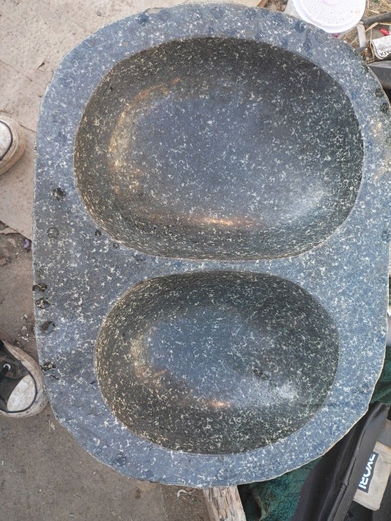 Two solid granite double basin bowls. Possibly for sink or bird bath or decoration