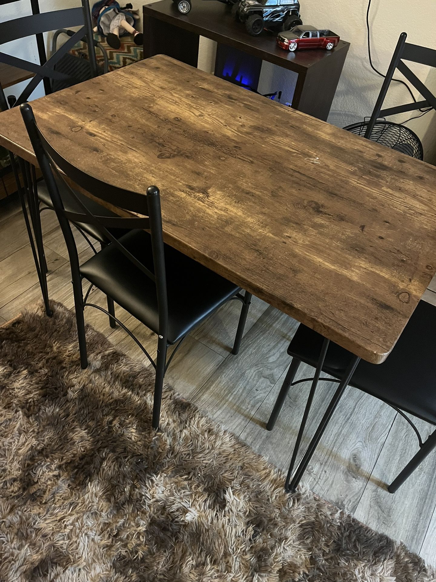 Brand new table never used no stains comes with 4 chairs in perfect condition