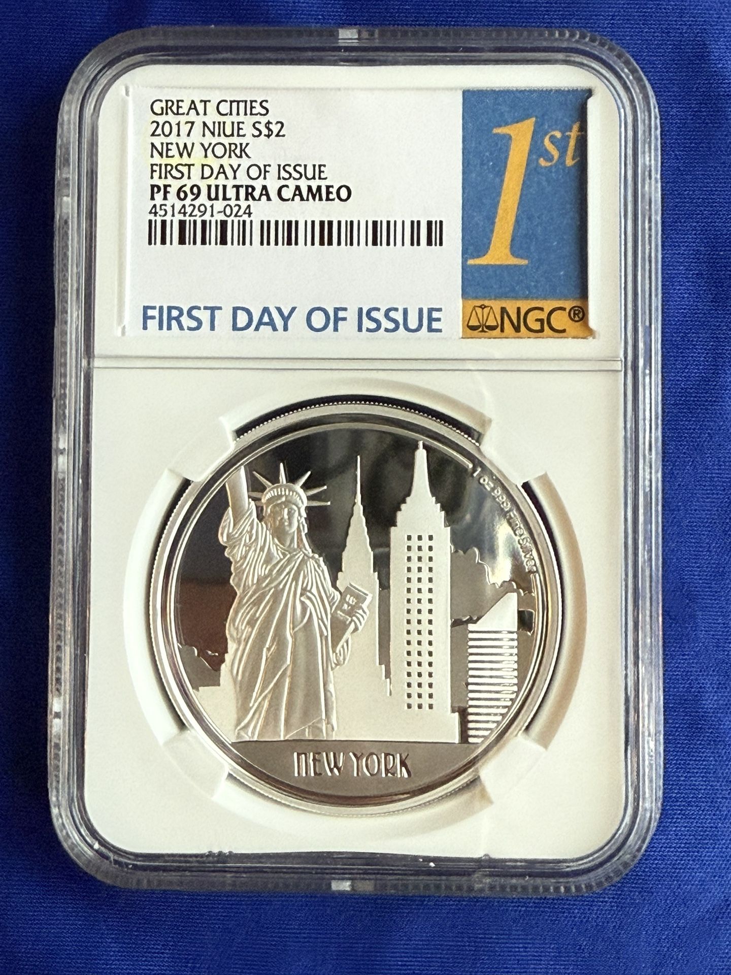 2017 NIUE NGC PF69 ULTRA CAMEO NEW YORK 1oz SILVER COIN