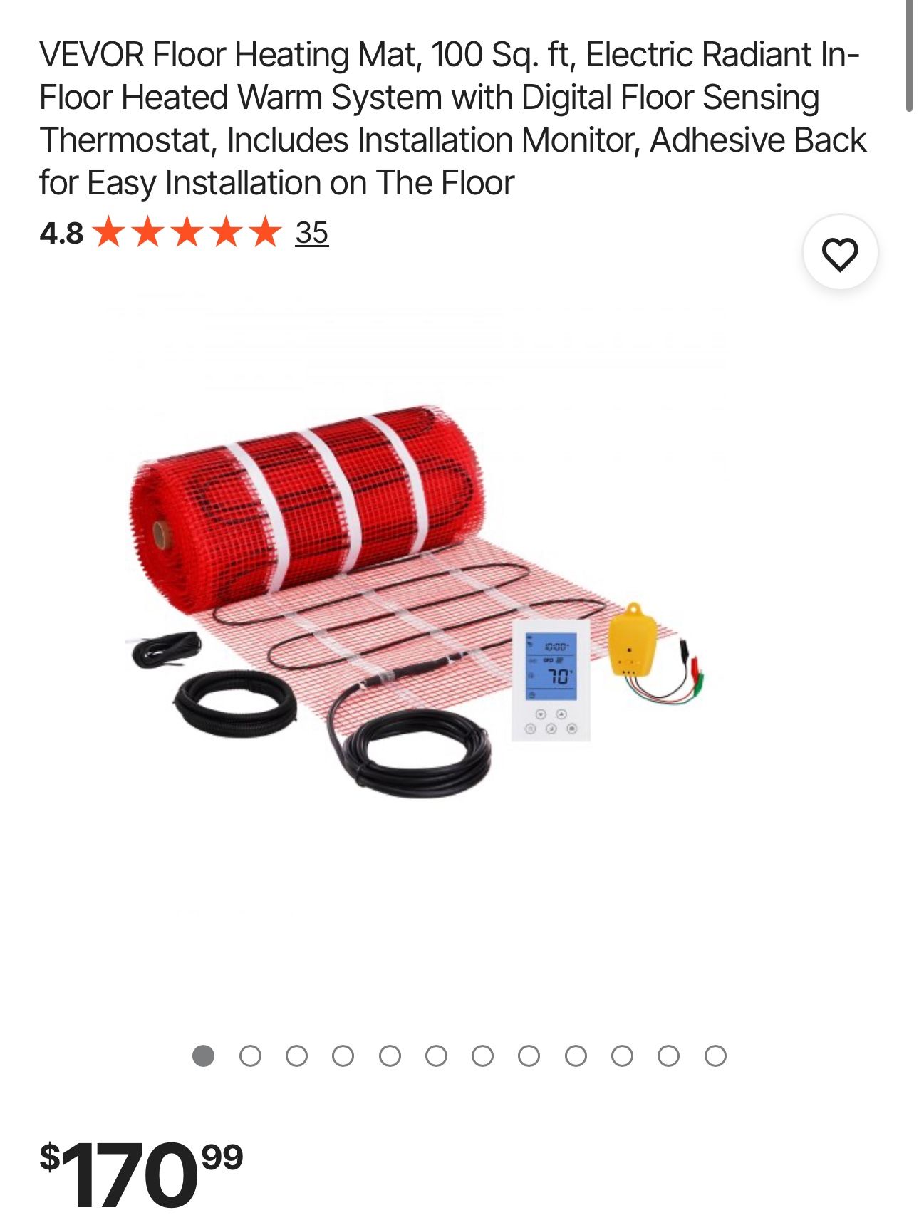 VEVOR Floor Heating Mat, 100 Sq. ft, Electric Radiant In-Floor Heated Warm System with Digital Floor Sensing Thermostat, Includes Installation Monitor, Adhesive Back for Easy Installation on The Floor