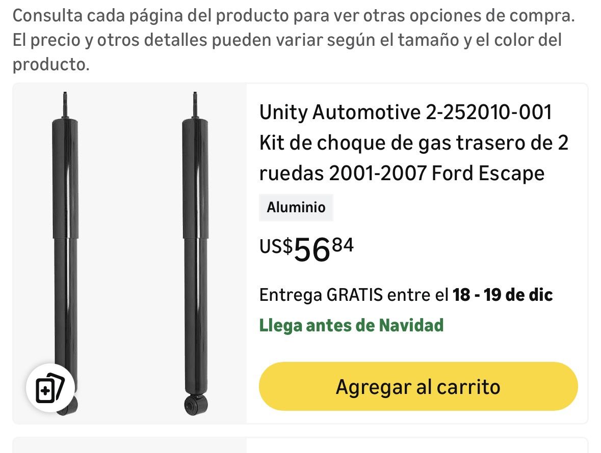 Unity Automotive 2-252010-001 Kit de choque de gas trasero de 2 ruedas 2001-2007 Ford Escape