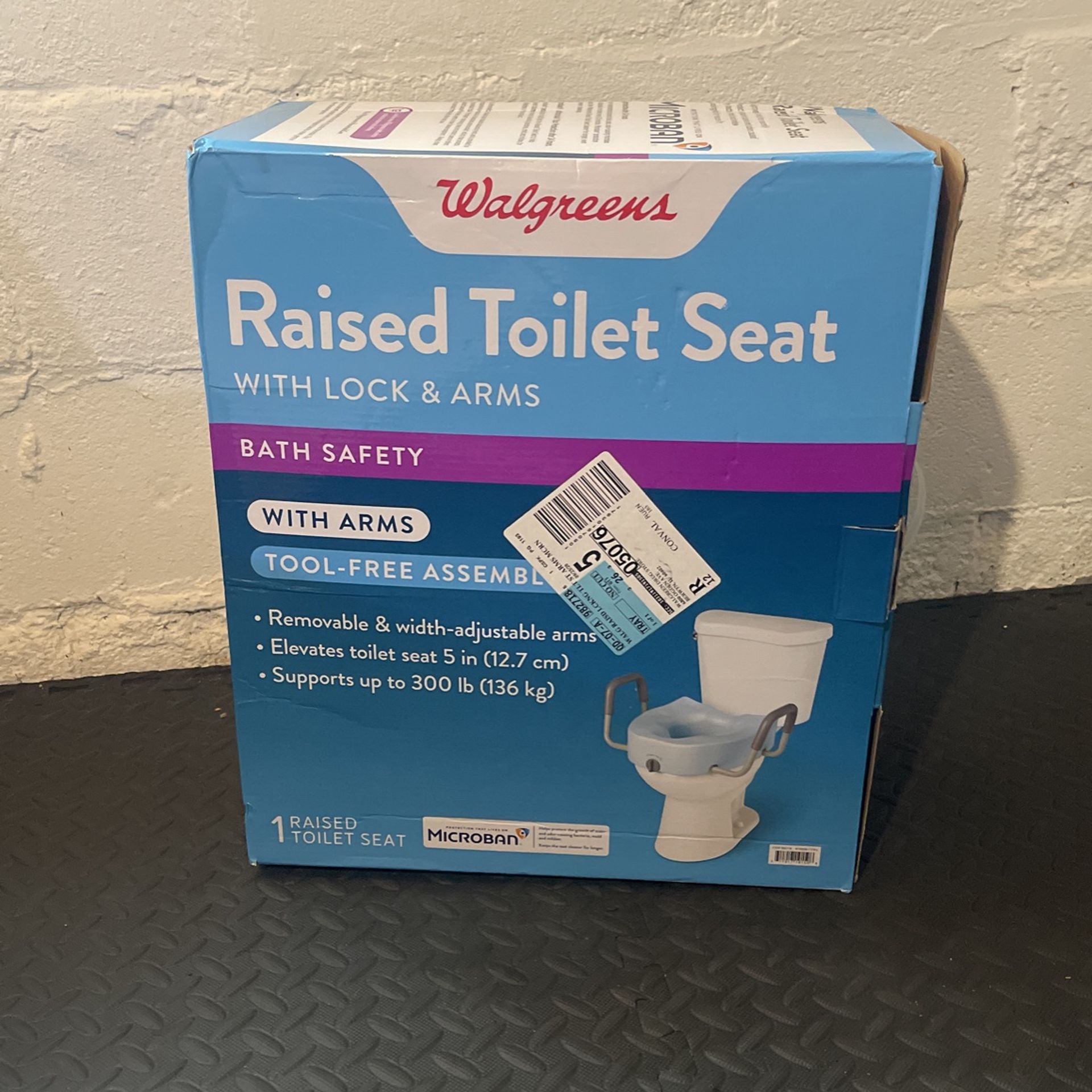 Lock onto the toilet bowl, has arm rests. Perfect for Elderly, postpartum or post surgical recovery. Pick up only.