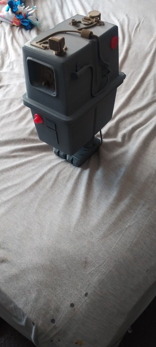This droid is featured in several of the Star wars movies. 3D printed at ample size for storage of fun, collectives or anything you want I suppose. The hinge on right is loose. Fix it yourself. Any fans interested?? Super fun to set on dresser table floor or just buy it and destroy whatever ya want fun stuff star wars