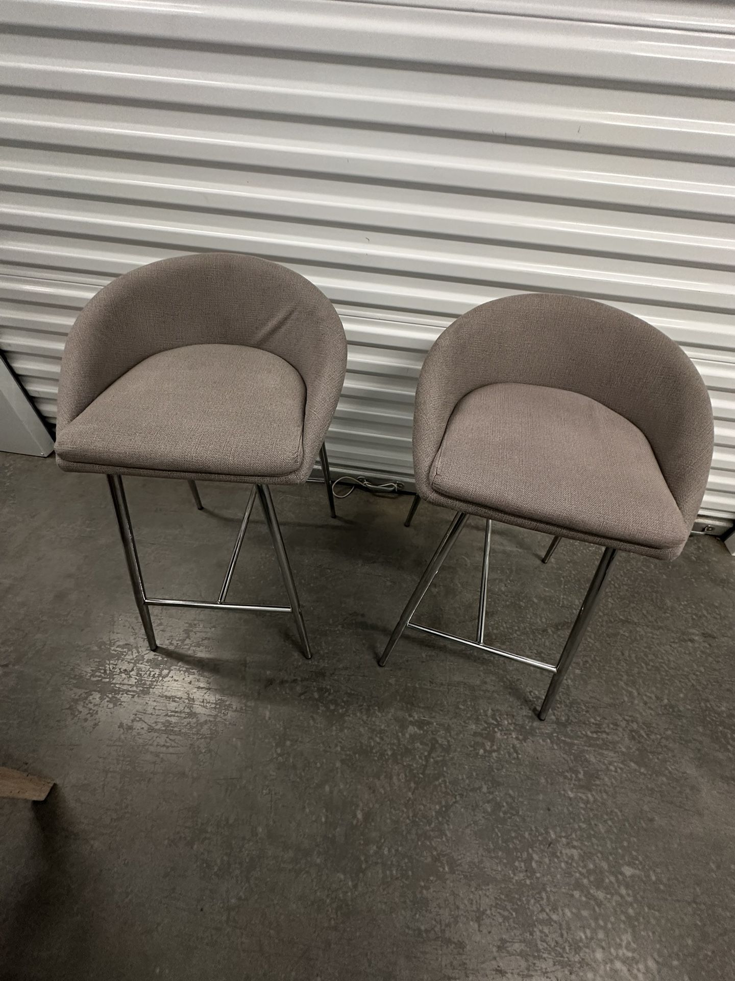 Stylish bar stools for your kitchen or bar area. Set of two. Gray upholstered seats. Chrome legs, modern touch. Counter height FREE DELIVERY AVAILABLE