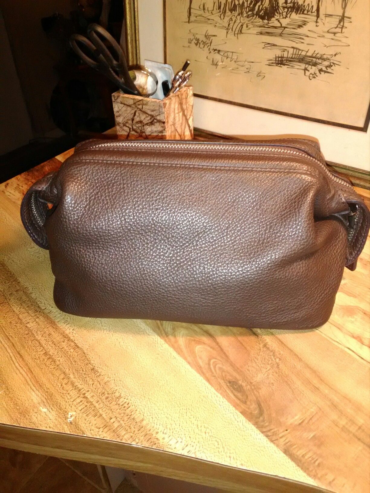 New travel bag. 11 x 6 in. Leather. Retails for $125 selling for less then half. 50% plus off or best offer.