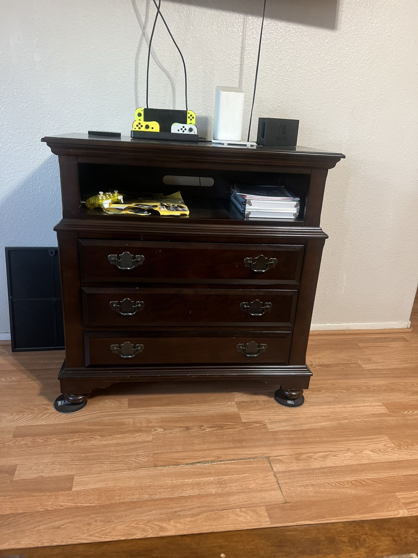 Dark wood, with space to store anything you like.