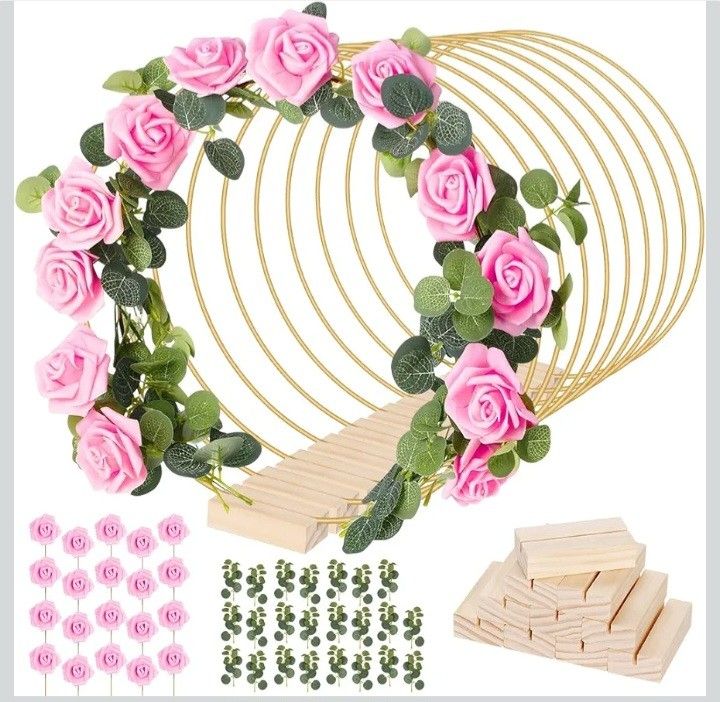 10 Pieces 12 Inch Metal Floral Hoop Table Decoration, Metal Wreath Ring with 10 Place Card Holders, Silver Hoop Rings for Wedding Decorations and