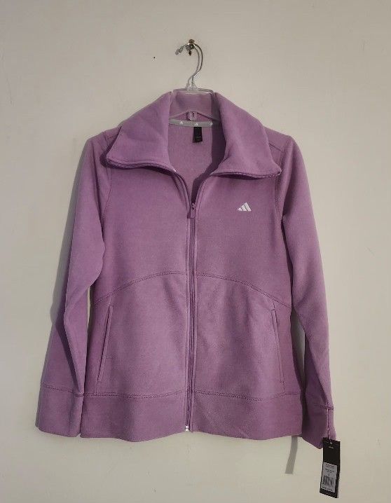 Adidas Heather Fleece Full-Zip Jacket Color:Light Purple, Size L.
