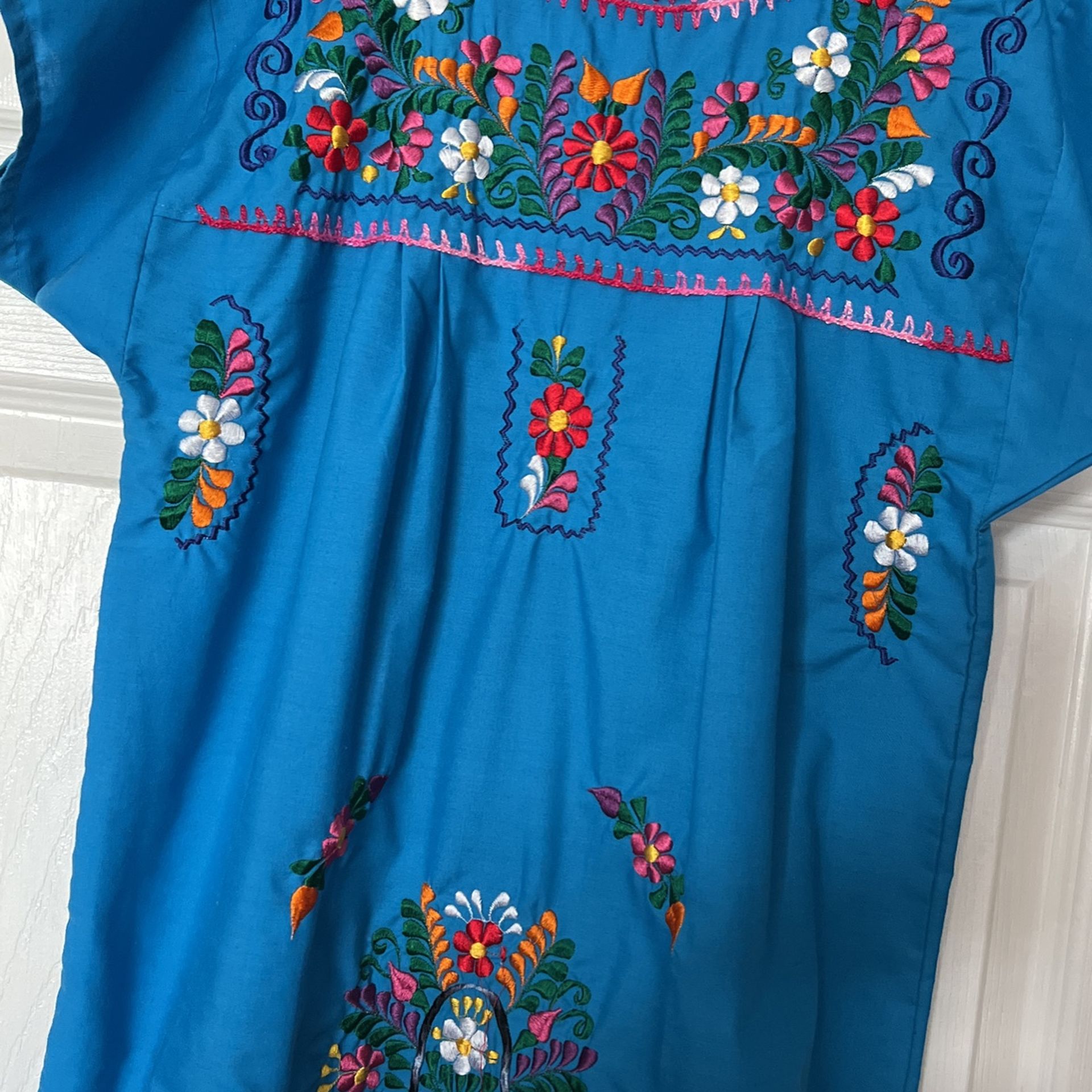 Blue Mexican Style Embroided Dress