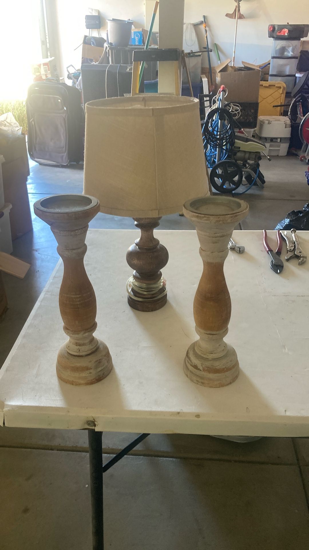 Nice lamp ans 2 candle holders beige bronze brown color like new $$30 for all Murrieta ca pick up