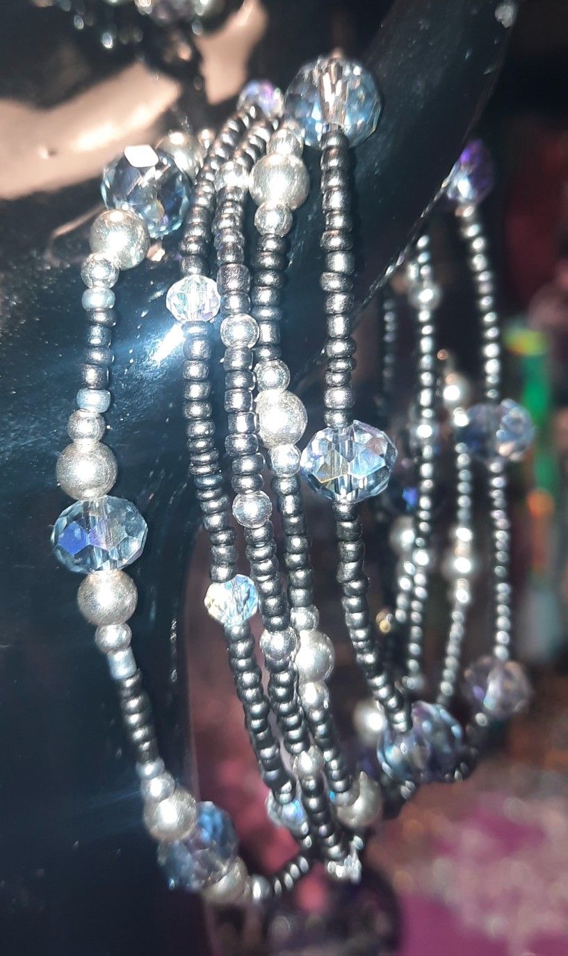 Serious Buyers Only Inquire on Day You Plan to See/Purchase Item Only Firm Price No Exceptions First Come First Serve Pick Up & Cash Only Very pretty gun metal/smoke colored stretch bracelets (5 of them), silvertone fishhook dangle earrings, ring (size 7-12) Glass, stainless steel, & acrylic bling beads Durable stretch - long lasting Very Sparkley and One of a Kind Beautiful for gift giving with Christmas around the corner Ready for pick up now $30 for entire set - see pics Location: 60 & McClintock