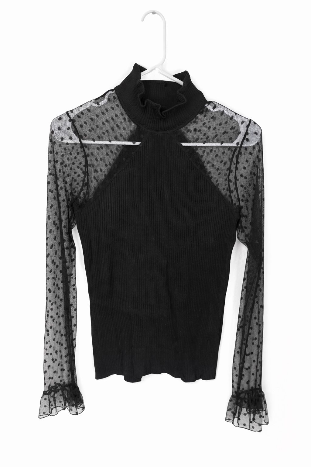 Cuello alto + mangas transparentes con lunares Sexy, elegante y moderno Nuevo con etiqueta Talla: Chica(ch), Grande (G) 💰 Precio: $28 📦 EnvÃo disponible 🖤 Black Top with Sheer Mesh Sleeves Mock neck + sheer polka dot sleeves Sexy, elegant, and modern New with tags Size: Small(S), Large (L) 💰 Price: $28 📦 Shipping available