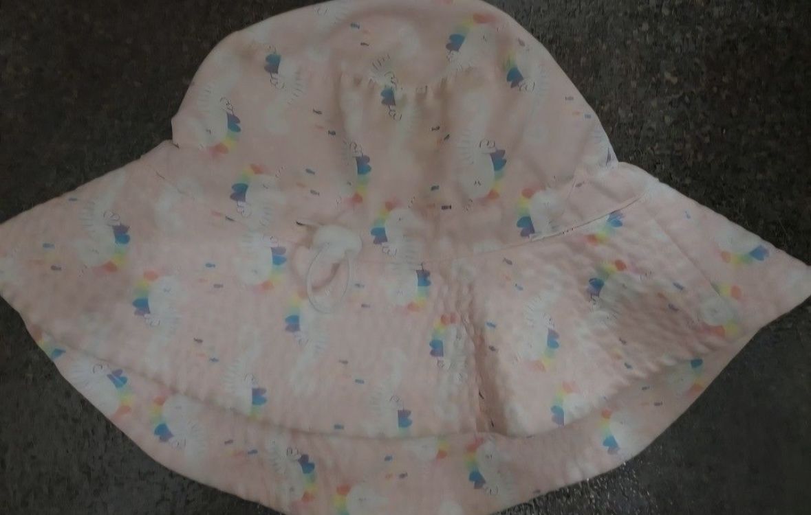 Adjustable strap to hold tightly to a head. No size listed, but probably best for 12 months up to 3t. Great deal! Cash only.