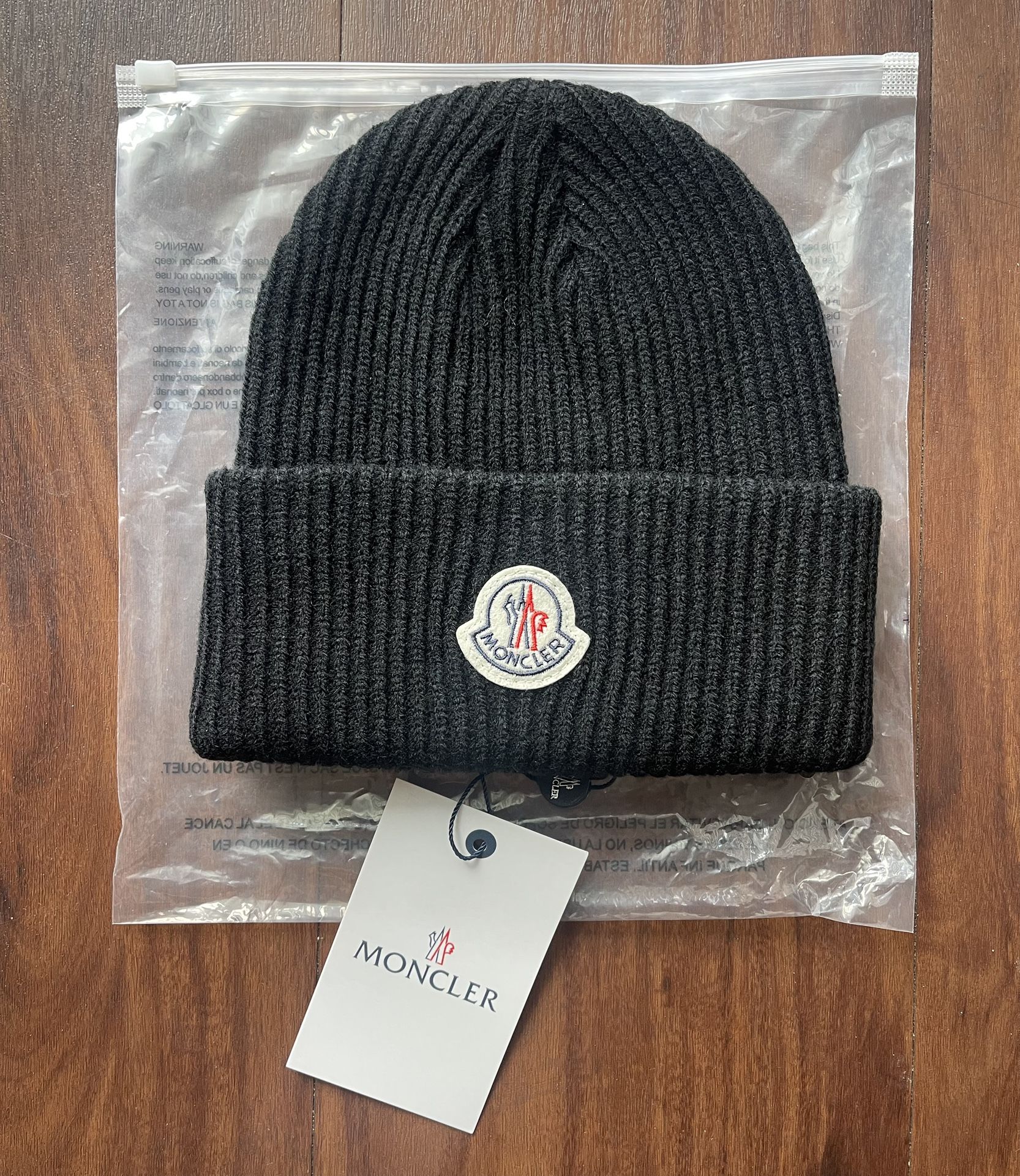 Moncler beanie - Brand new - Black with white logo - Scannable QR code Feel free to ask any questions
