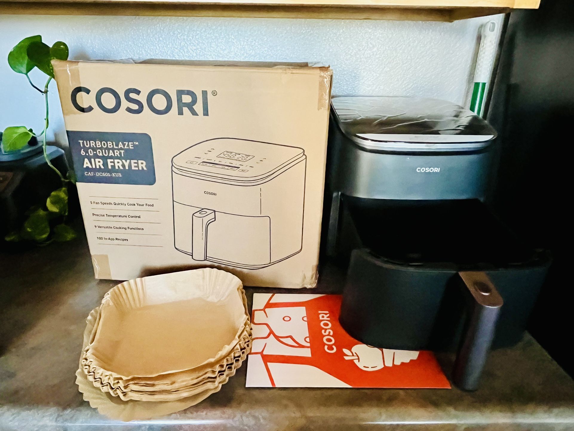 Cosori 9-in-1 TurboBlaze Air Fryer 6 Qt, Premium Ceramic Coating, 90°–450°F, Precise Heating for Even Results, Air Fry, Roast, Bake, Broil, Dry, Frozen, Proof, Reheat, Keep Warm, 120V, Dark Gray Solo la use dos veces