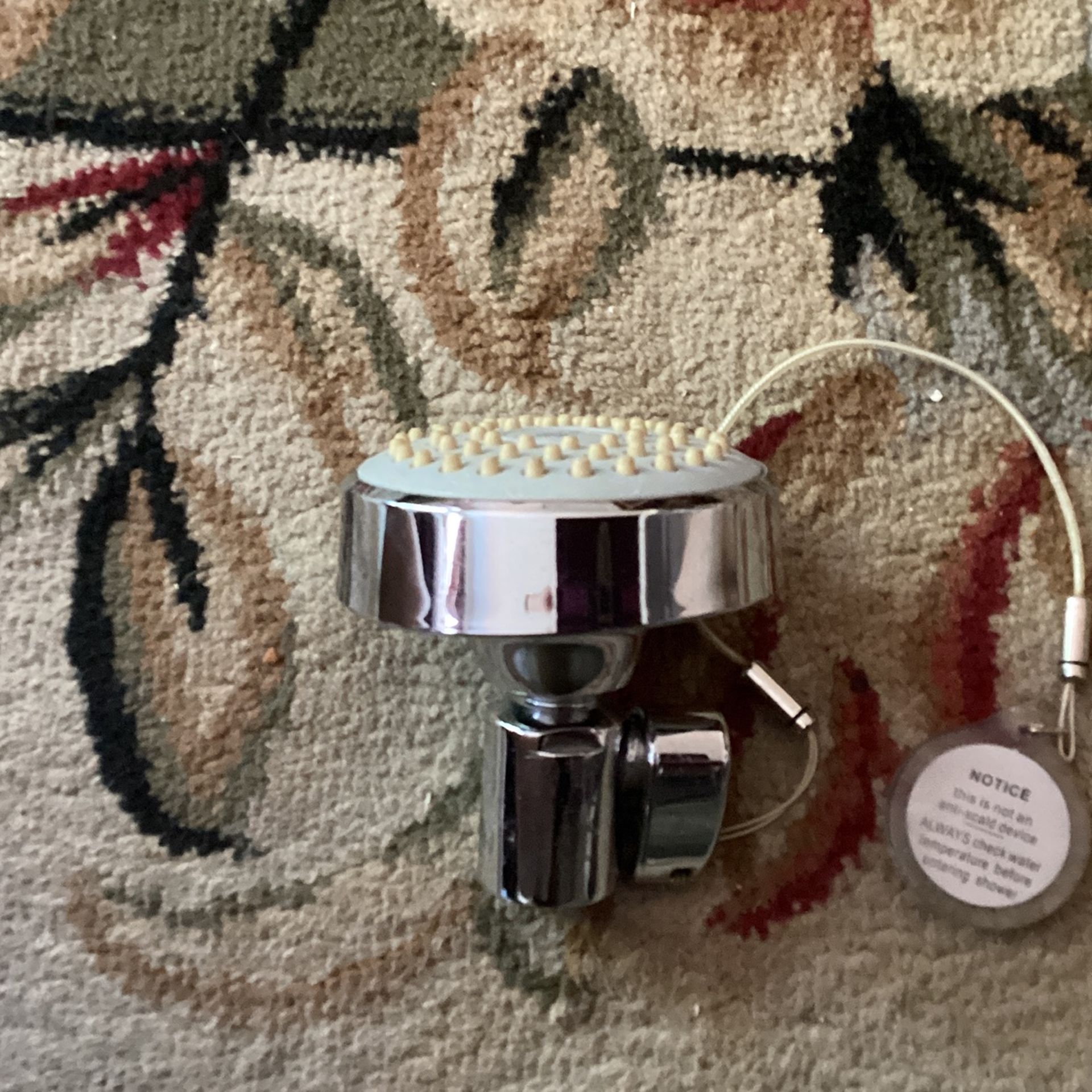 This very efficient shower head is the best thing ever. It is great for water conservation in the Shower, especially with the price of our utility bills like water going up. My new walk-in shower came with a new head so I don’t need this one any longer. I am asking a moderate $15 just look at how much it will save you on your water bill.