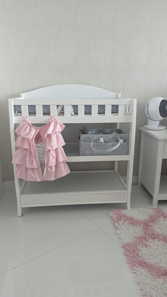 Baby changing table. Built and ready to go. Looks brand new. Used it a few times while on vacation. First come first serve. 35 inches wide 19 inches depth 39 inches tall