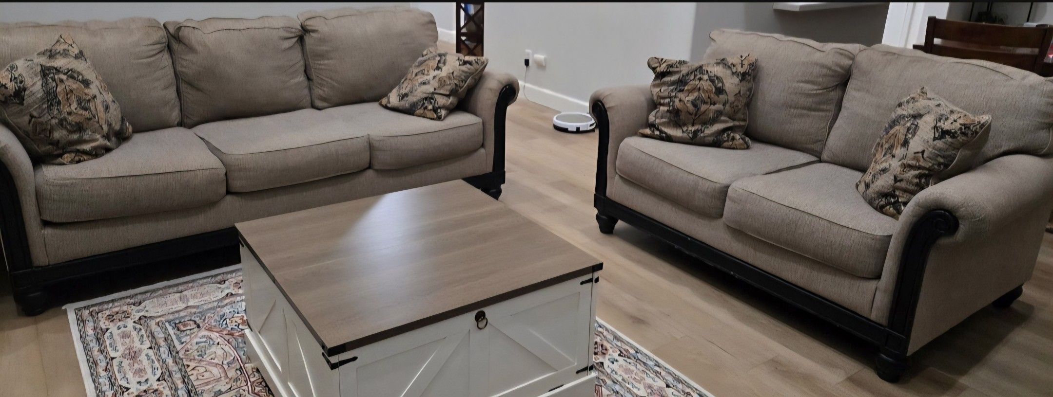 Sturdy Ashley sofa and loveseat set in good condition. No issues, only normal wear.