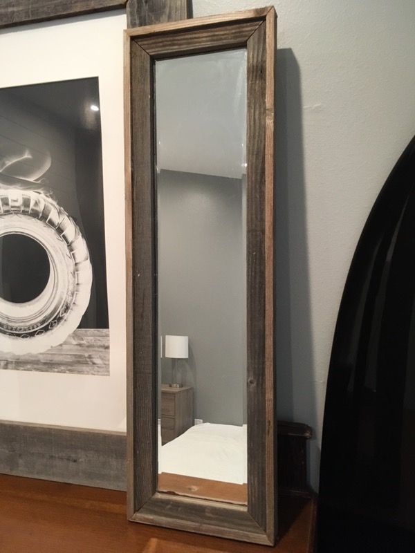 Very cool & Rustic 12" wide x 40" long Made it my self using an antique beveled mirror and reclaimed wood.