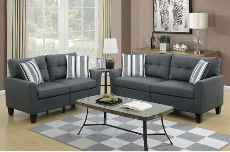 Reversible Sectional Sofa with Ottoman Item # F6474 Color: Charcoal Material: Polyfiber Dimensions: Sectional: 90″ x 90″ Ottoman: 34″ x 25″ x 19″ Available in Charcoal, Grey and Beige Some Assembly Required