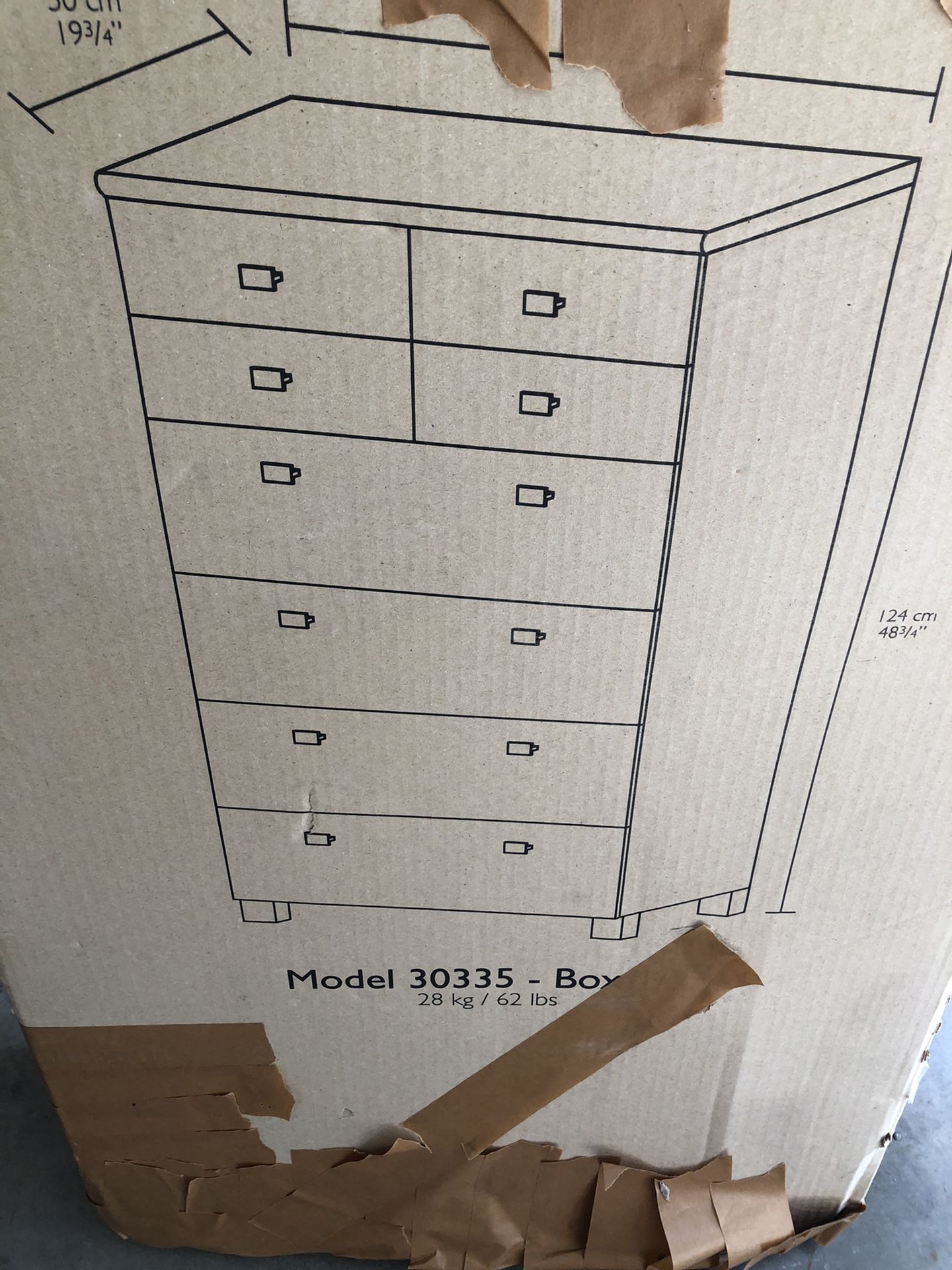 Please see pictures for measurements. Needs to be assembled. Color is beigh. New in box