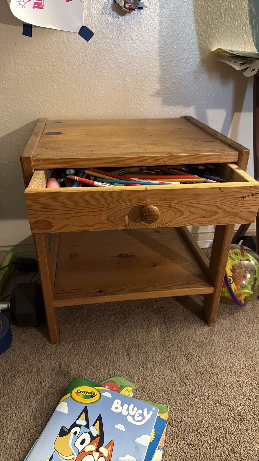 Small kids desk, sturdy wood just needs a real good cleaning
