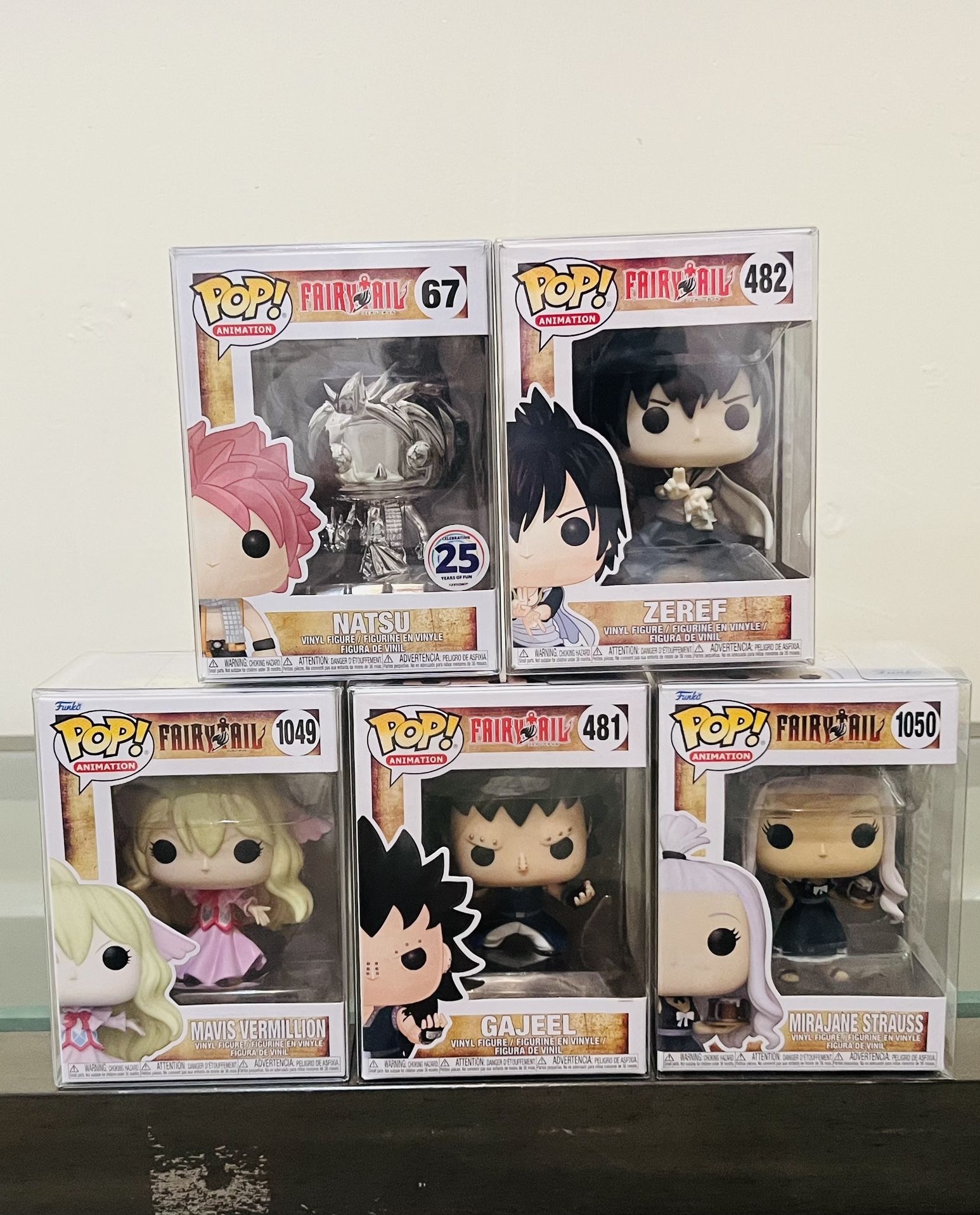 FAIRY TAIL ANIMATION LOT OF 5 FUNKO POPS 1.MAVIS VERMILLION 2.ZEREF3.MIRAJANE STRAUSS4.GAJEEL5.NATSU (CHROME) FUNKO POPS