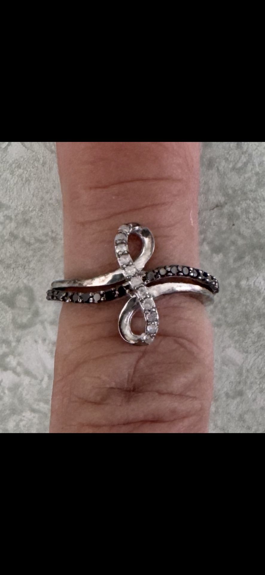 Sterling Silver Eternity Ring, Black/White Diamonds, sz 6