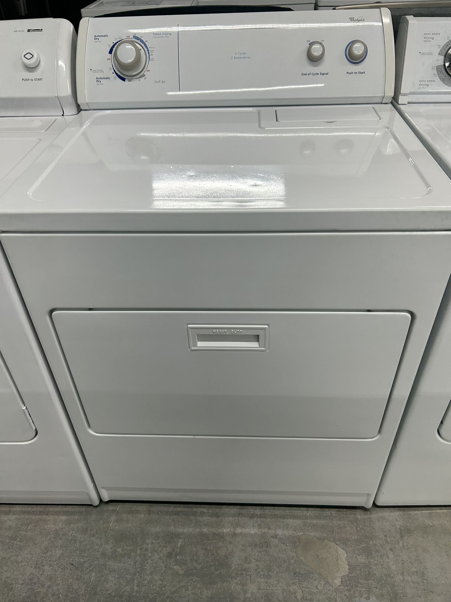 Commercial quality super capacity Whirlpool dryer. Dryer has 6 cycles 3 fabric care temperatures pull down hamper door and up top lint filter. Comes with warranty. Financing and delivery available.