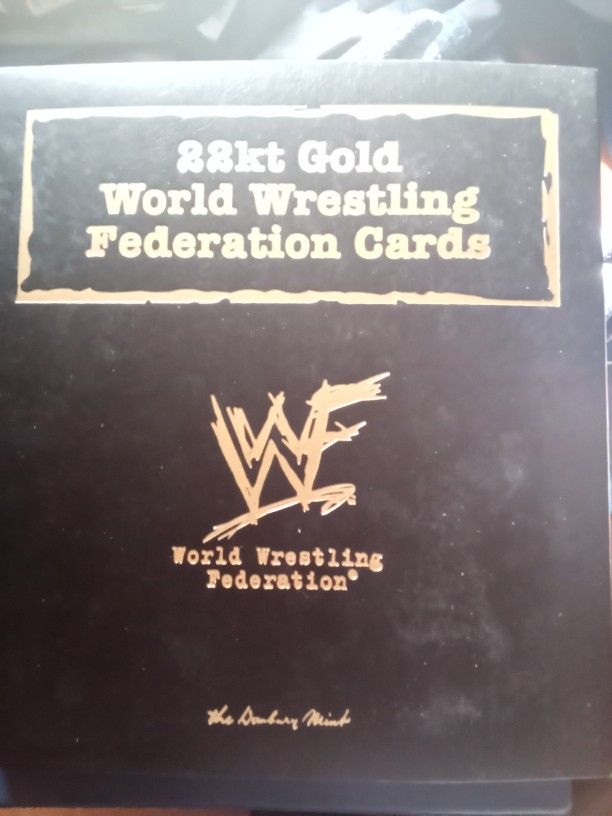 Perfect condition, complete set WWF 24 kt gold cards with binder. Second set, WWE cards with binder, only 24 cards in second binder