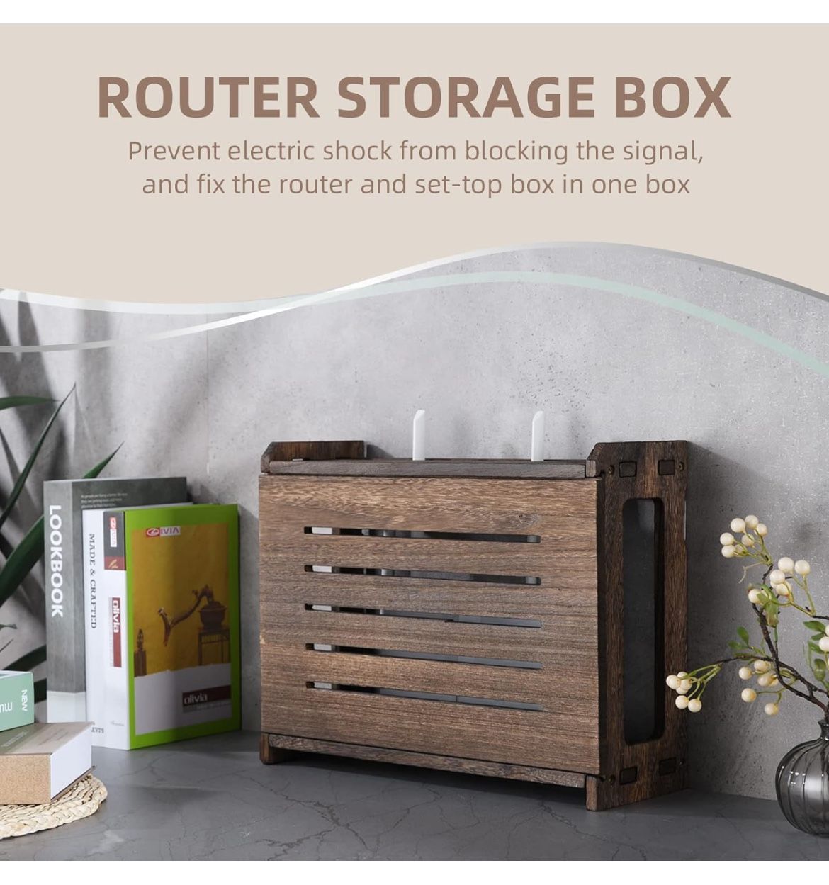 Wooden Router Shelf Wall Mount WiFi Router Storage Box Modem Cable Router