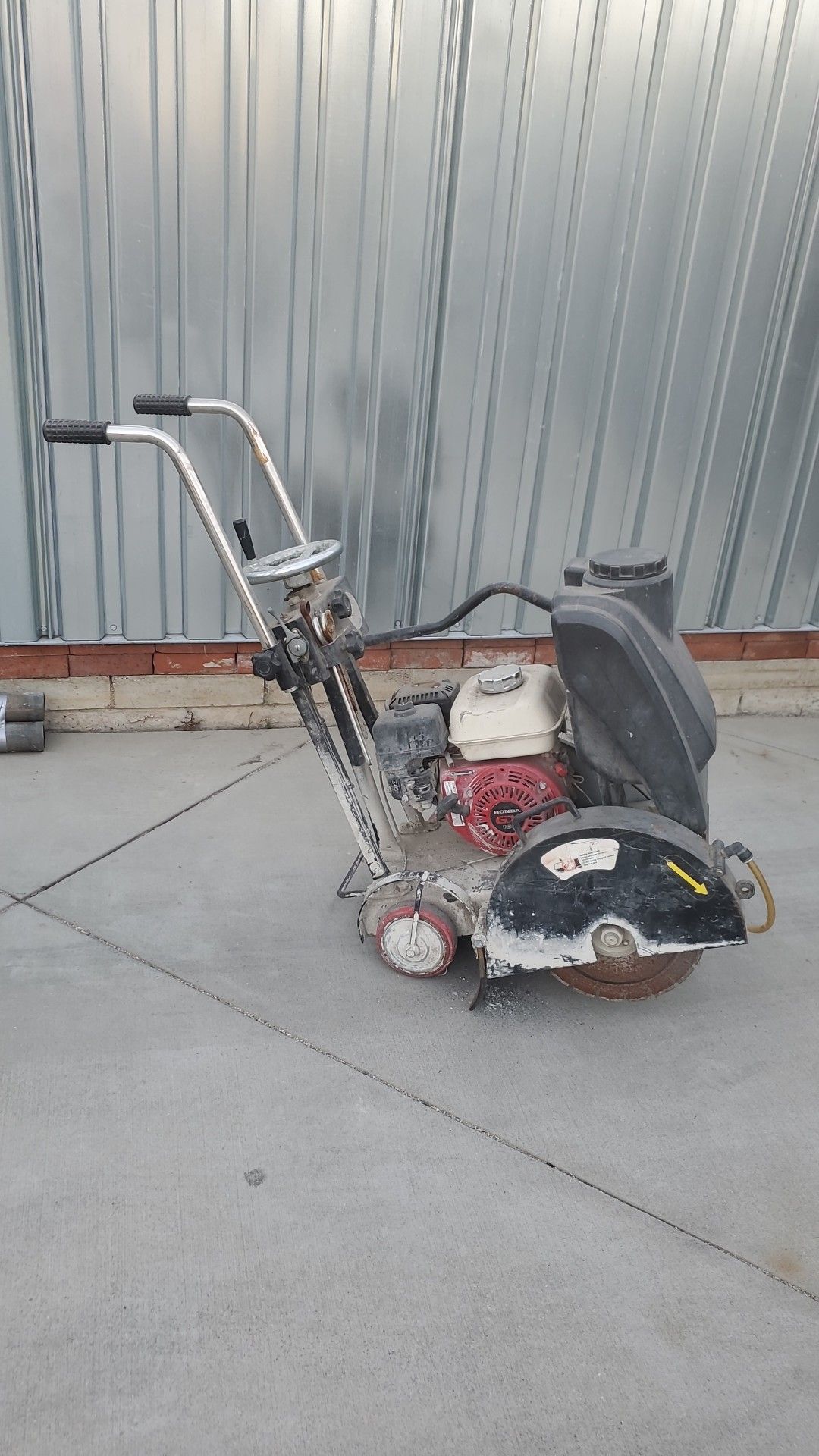 Walk behind concrete saw Honda engine.