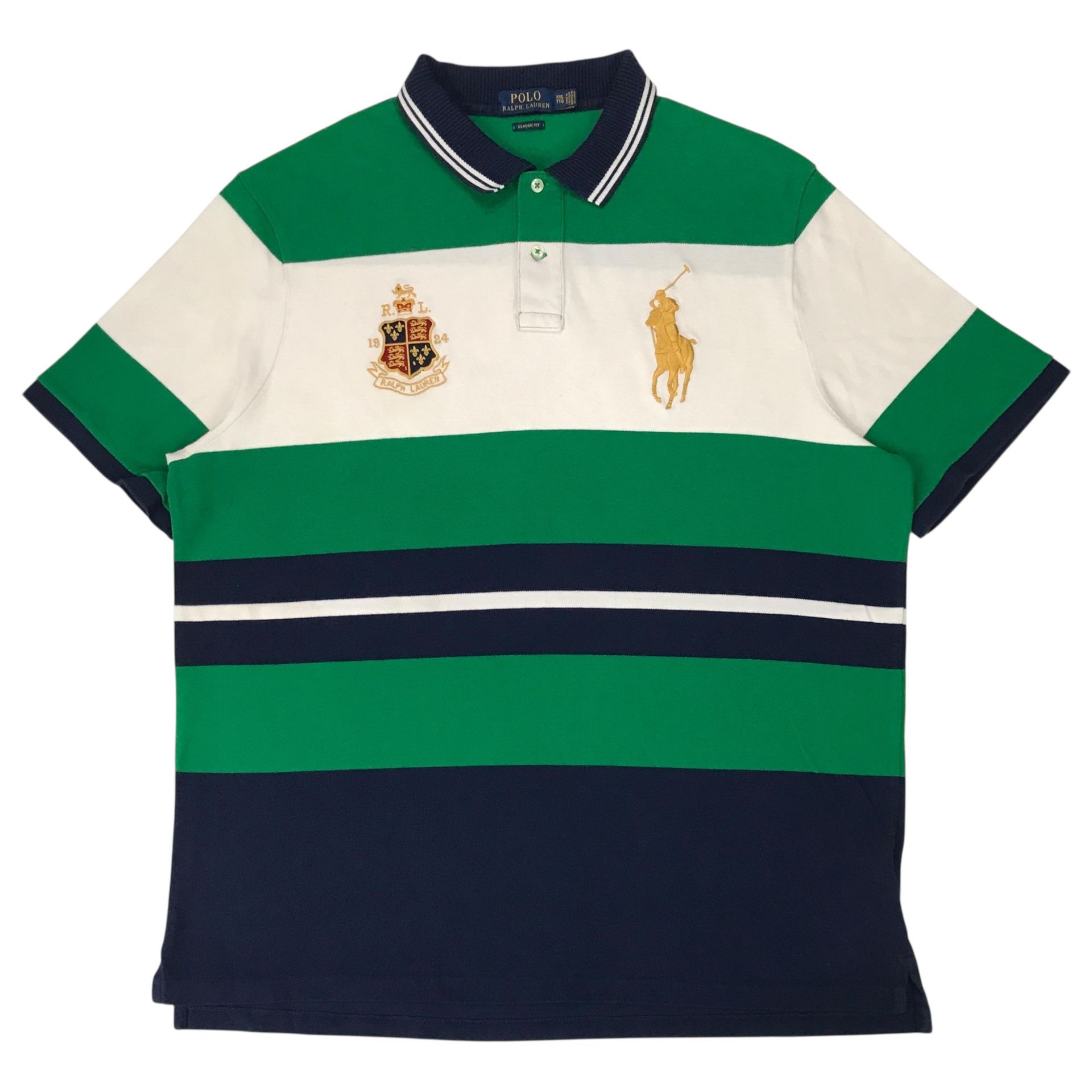 Polo Ralph Lauren Shirt Mens XXL 2XL Green Big Pony Rugby Crest Knit Collar Y2K