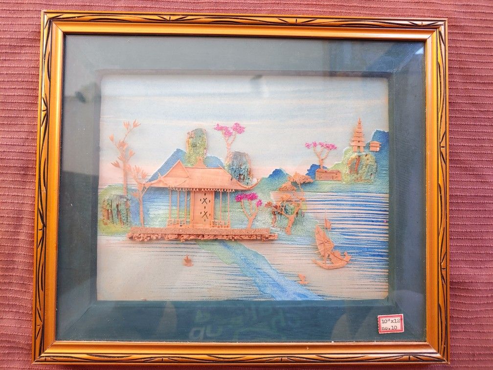 Wood frame, gold bamboo pattern Veranda landscape scene 13"W x 11"H x 3/4"D Condition: new, in box No trades, local pickup only, cash only