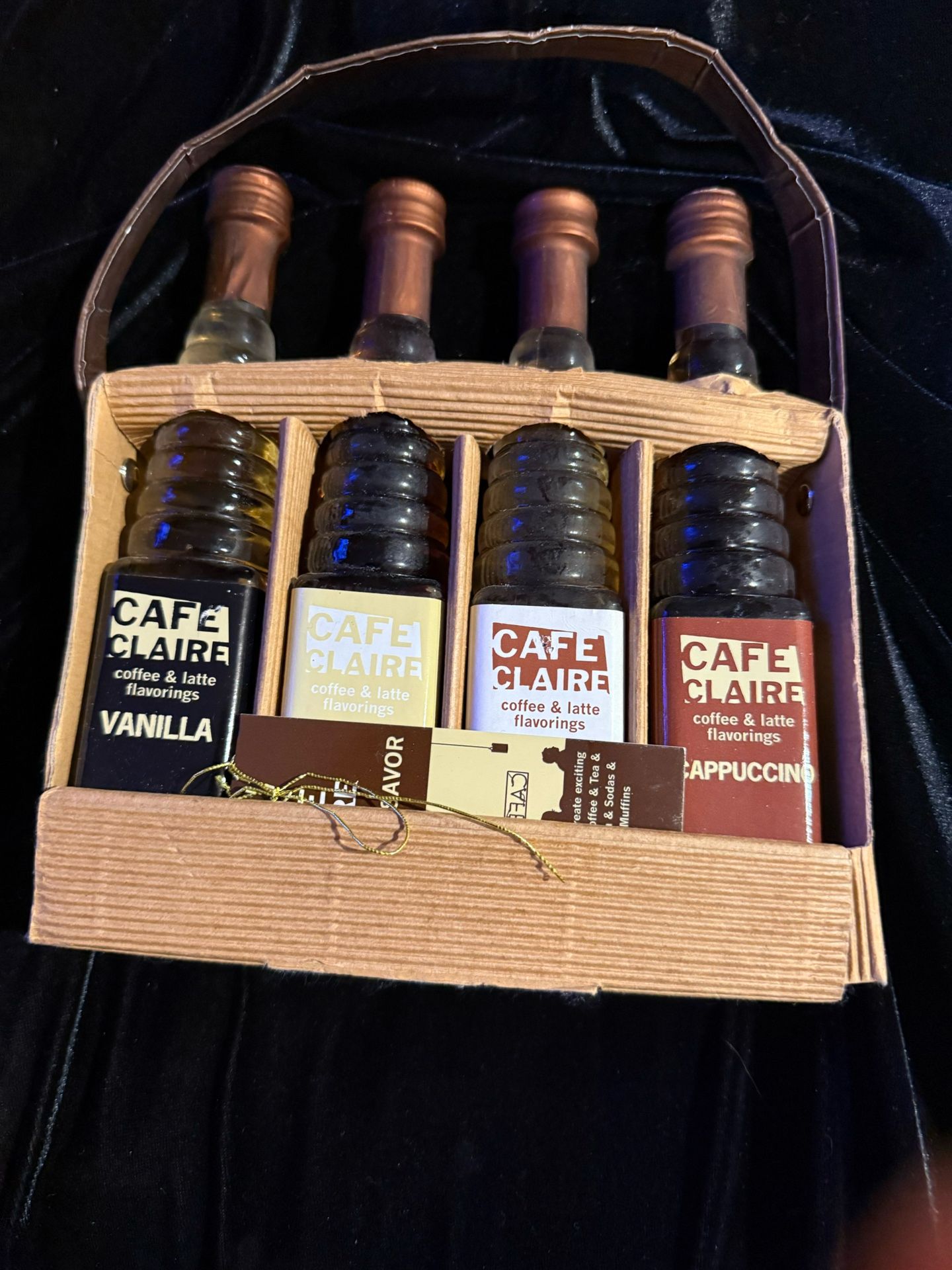 Cafe Claire Gift Boxed Set 4 Coffee & Latte Flavorings 3.4 FL Oz Glass Bottles