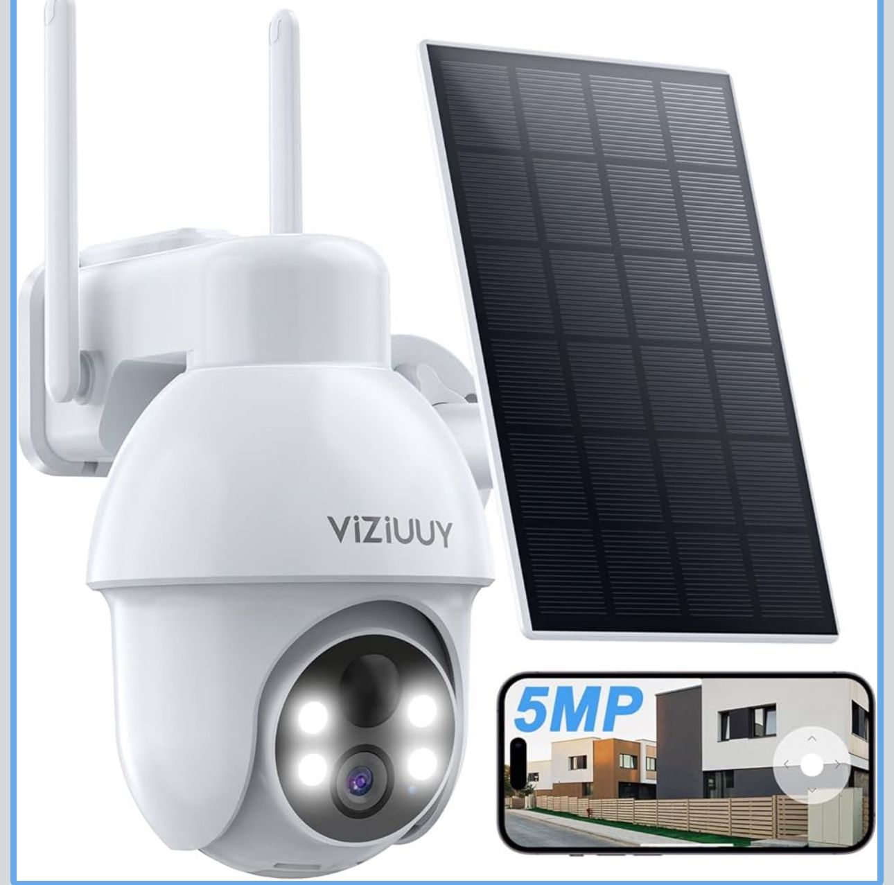 5MP Solar Security Camera Outdoor, Wireless Battery Powered Security Camera with 360°View, Pan and Tilt, Color Night Vision with Floodlight,PIR Human Detection,Compatible with Alexa