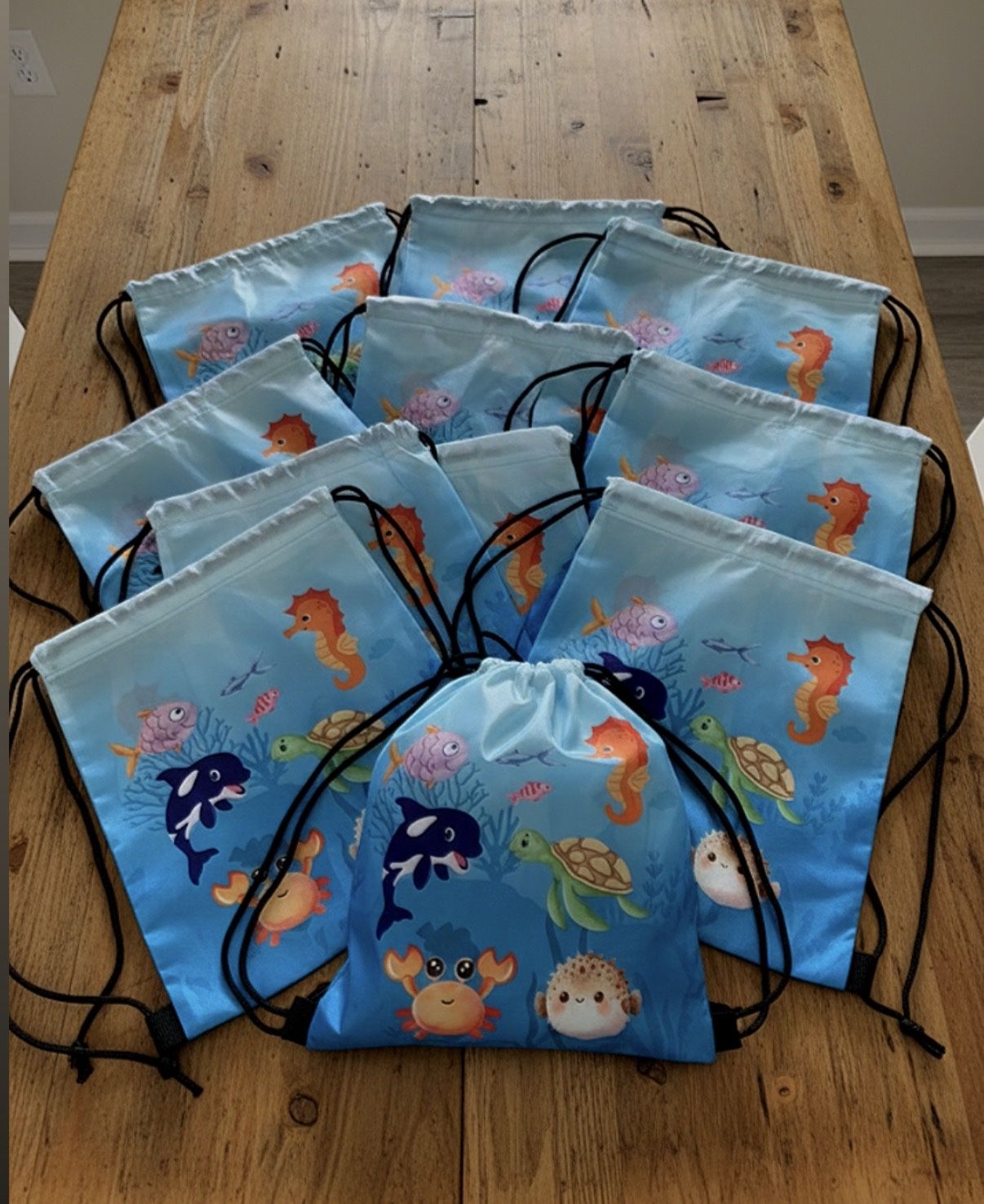 12 NEW Kids Drawstring Backpacks – Sea Animals – Perfect for Party Favors & School