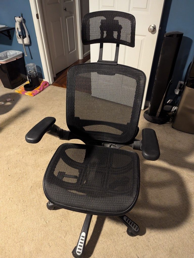 Ergonomic Mesh, High Back Desk Chair - Adjustable Headrest - Flip-Up Arms - Tilt Function - Lumbar Support - Multidirectional Wheels Dimensions: 25.6"W x 22"D x 45.3"-54.9"H Pickup Only Accept Cash, PayPal & Venmo