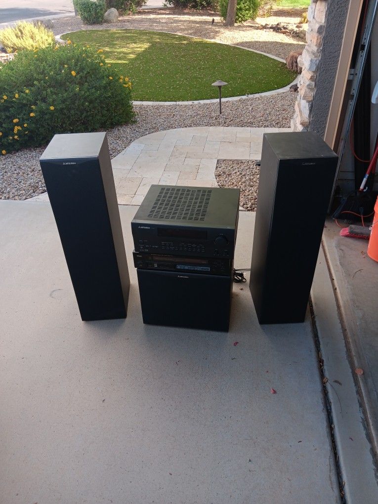Mitsubishi Tower Speakers, 12 In Subwoofer, Cd Player And Audio Receiver