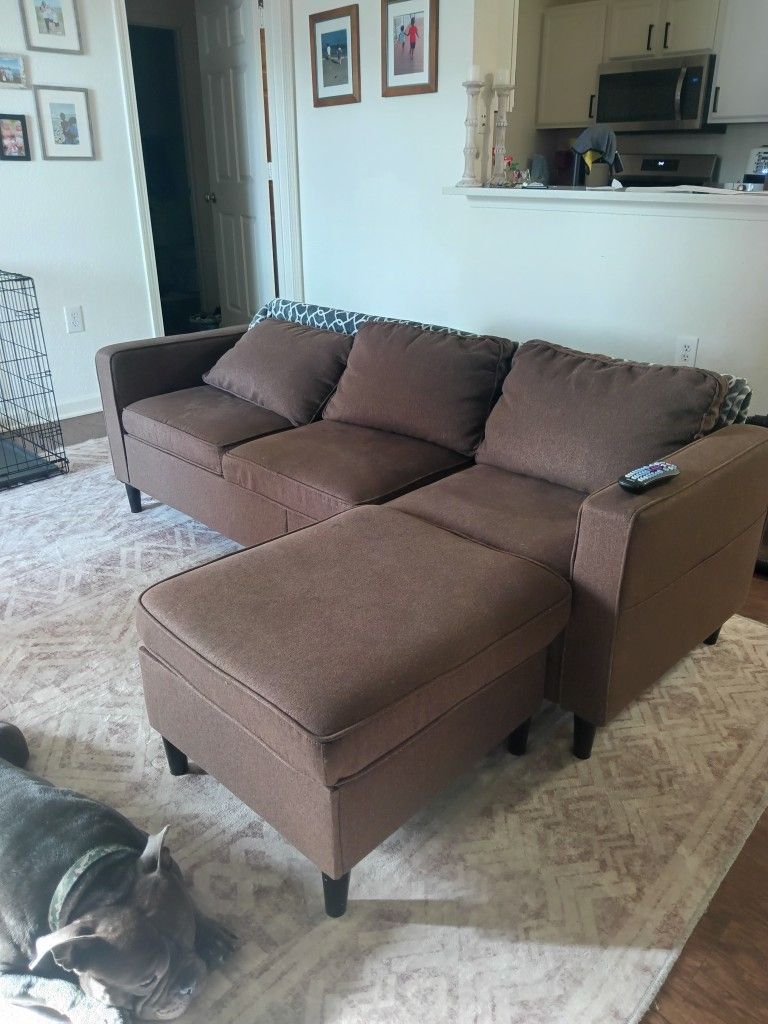 Brown couch with ottoman