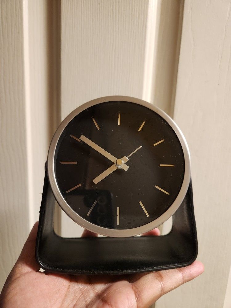 Unique addition to your stylish home. Keep track of time the old fashion way with this stylish clock. A dashing display on any surface to help you manage your time throughout the day. The gold mantel clock keeps the time in check while adding elegance to a work desk in a home office. The clock mechanism runs silent. Stainless steel clock makes a great gift for any occasion.