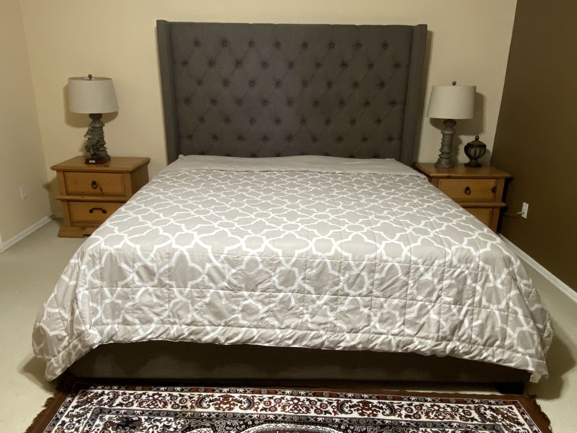 Excellent condition-2 night stands, 1 dresser, 1 mirror, head board with frame, mattress, 2 night lamps, 2 box springs included in the set.$1000 or best offer. Items Can be sold separately