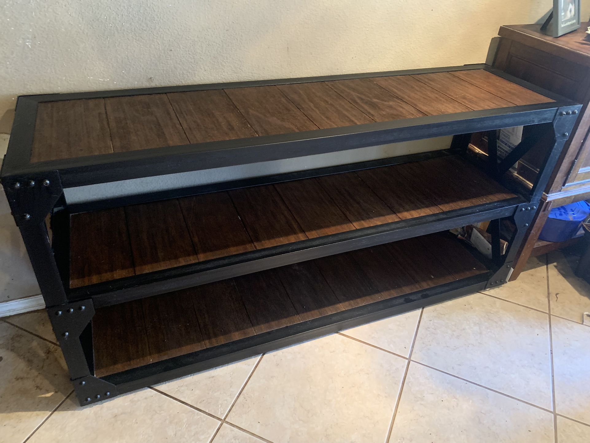 Very Nice Sturdy 3 Shelf Wood Unit With Steel Casing