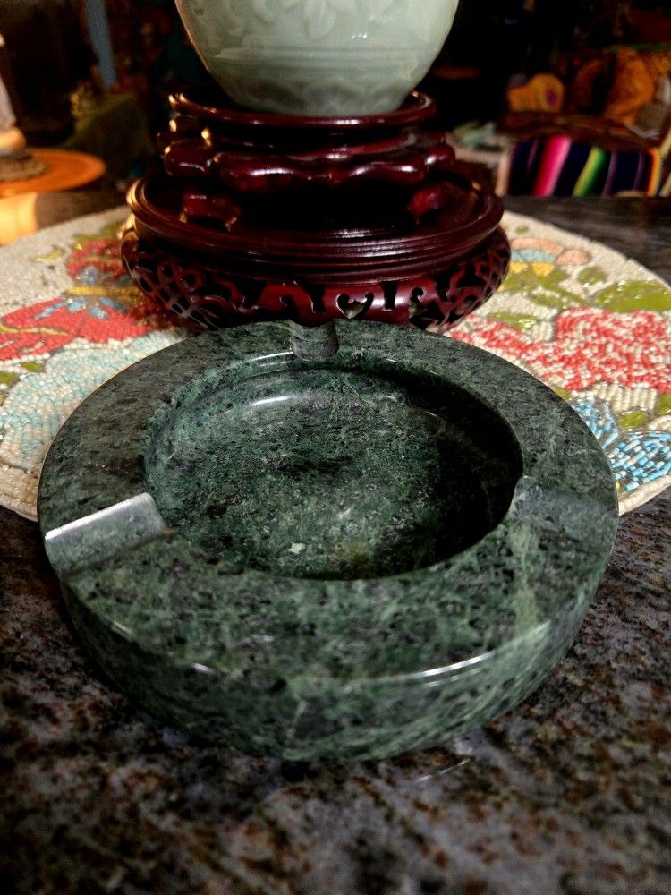 Vintage 1970's MCM Post Modern Emerald Green Marble Ashtray