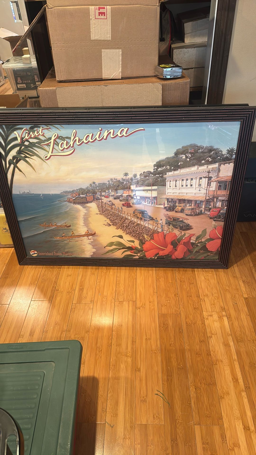 40w x 30 h wall hanging poster of Lahaina Hawai’i with wood bamboo frame