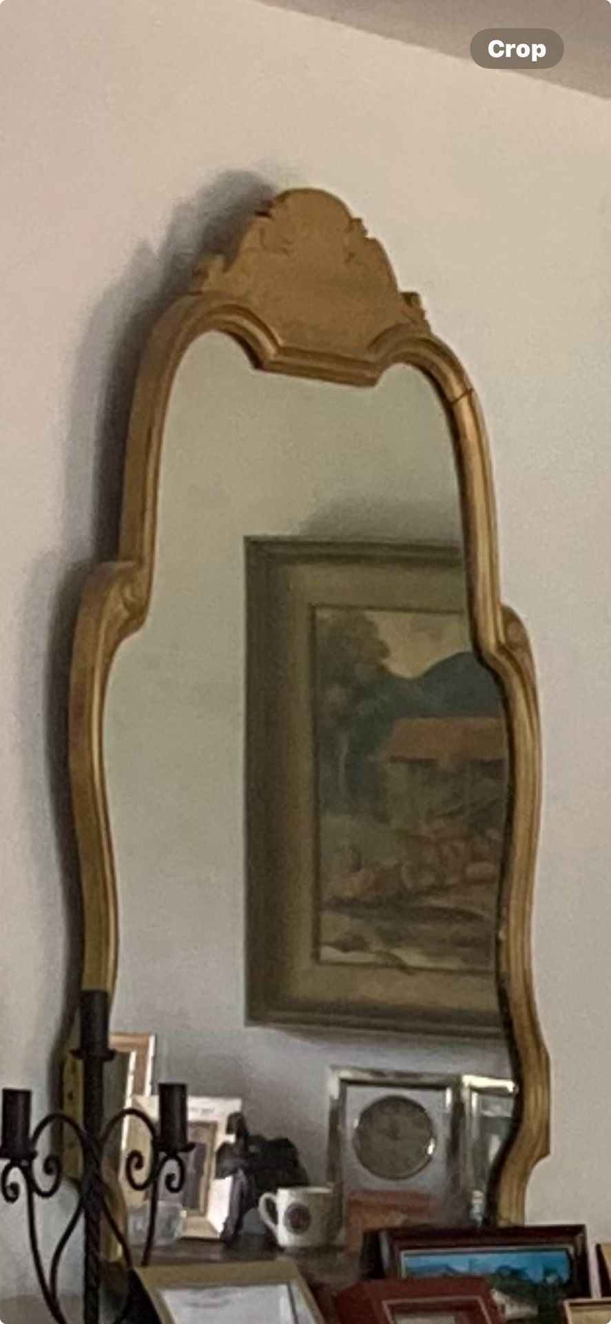 Nice antique mirror that was painted gold. Great unique piece!!