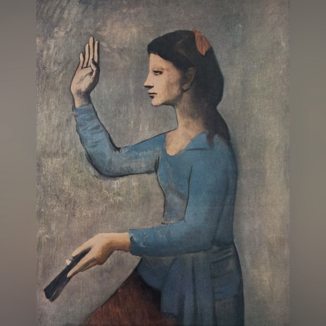 WOMAN WITH A FAN 1905 Original Vintage Fine Art Print Pablo Picasso Deco Nouveau Artist Antique Collectible 1950’s Ephemera