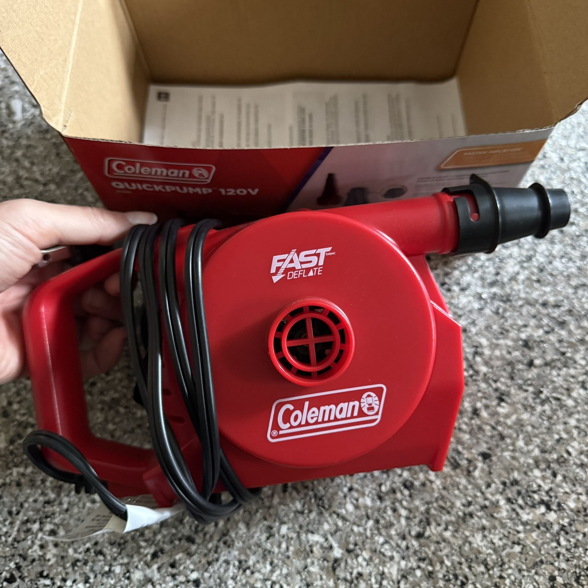 Easy porch pick up Woodinville. Bundle with other items & make an offer! Coleman QuickPump 120V electric air pump. • Plugs into standard wall outlet • Fast inflate / deflate function • Includes multiple nozzle adapters • Original box and manual included Great for air mattresses, pool floats, inflatable beds, rafts, and camping gear.