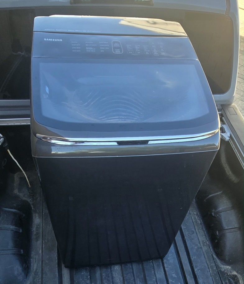 Samsung black stainless steel top load washer. Bought this washer 3 years ago. But it is leaking water. My wife got a new one, so there is no more need for this one. Washer is good to fix it or for parts. Motor and all parts work fine. it just has a water leak from somewhere. Paid $1200 for it 3 years ago. The first 50 takes it.
